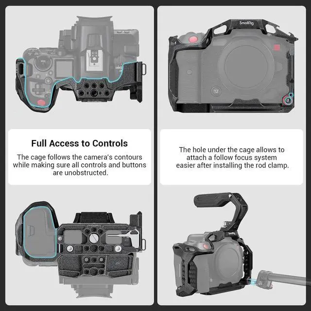 Featured RecommendationsFeatures built-in NATO rail that allows you to attach Side Handle 3260 quickly. There is a hole used to follow focus in the bottom left corner of the cage which you can install 12mm/15mm Single Rod Clamp 3276.
