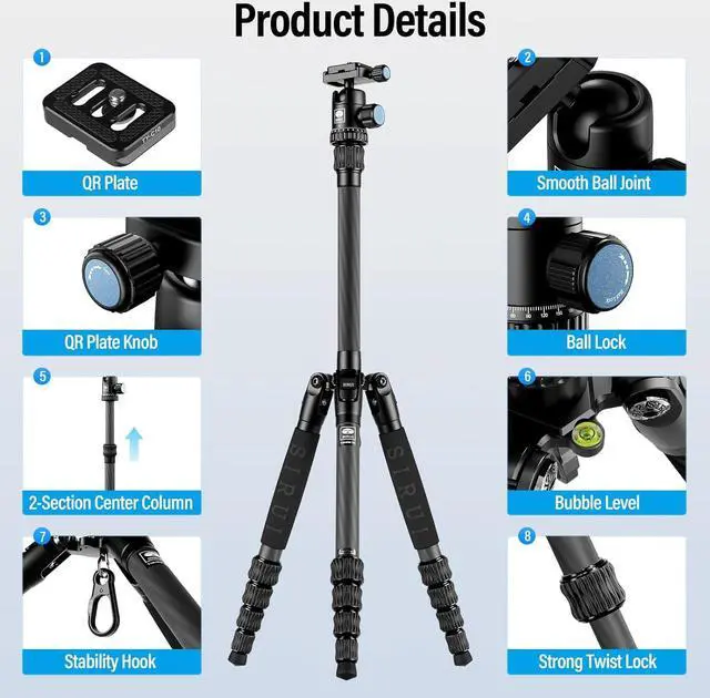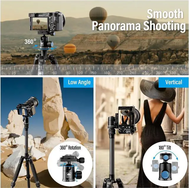 Multi-angle Shooting: The center column inverted function ensures extreme low angle photography and macro shooting. When the center column attached to the tripod, twist the column lock to adjust the column for additional working heights.