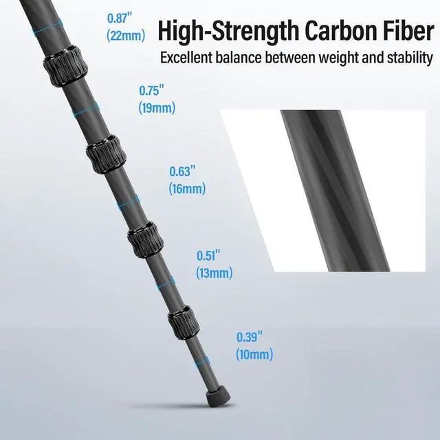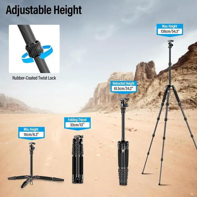 Easy to carry: Light-weight but durable, the portable tripod legs can be inverted and folded back 180 degrees, saving length to 13" compact storage size, also comes with a portable bag, which is easy to carry and pack for travel.