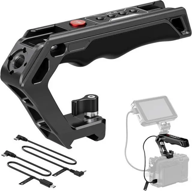 Versatile Multiple Options With 4 x 1/4" threaded hole, 1 x 3/8" ARRI threaded hole, and 2 x cold shoe, this robust aluminum alloy handle can attach to more accessories such as magic arm, LED light, microphone, field monitor, sound receiver, video transmitter, panoramic camera and more, for various shooting scenarios.