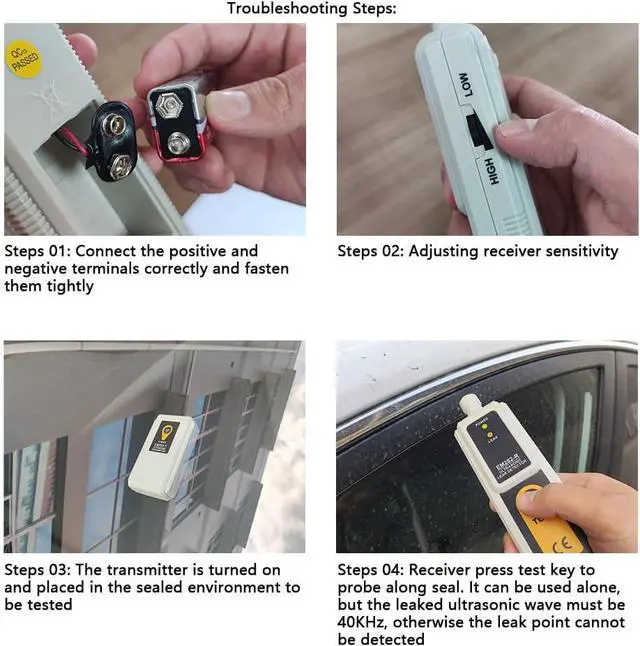 The Gas Ultrasonic Leak Detector, Simple and easy to use. When all have been sealed, it can locate the leak, you can able to use it to find a water leak in a truck, finding air leaks on your vehicles, finding leaks around doors and windows. Also you use the listening device outside the car.