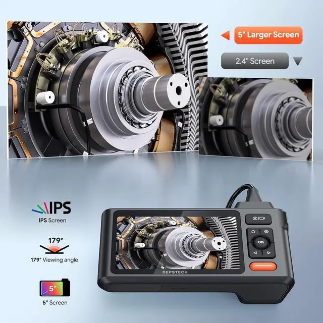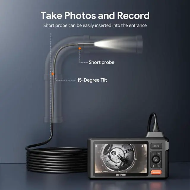Illuminate Your Inspections: With 6 LED lights, this borescope provides adjustable brightness levels to suit any inspection environment. Whether you're inspecting dark pipes or dimly lit engine compartments, these LED lights will provide the necessary illumination for a clear view, allowing you to focus on the details that matter most. With Depstech's inspection camera, you'll never miss a thing in even the darkest and tightest spaces.