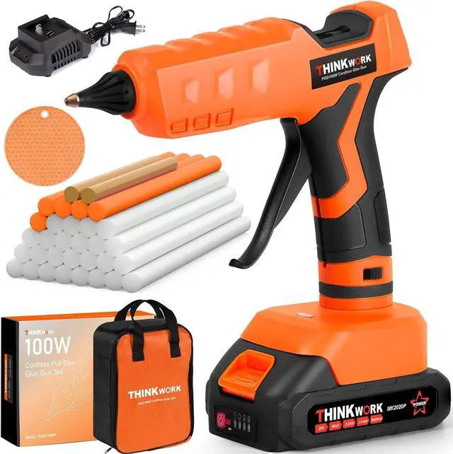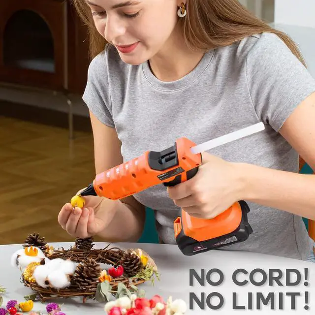 Faster Glue Output- This wireless hot glue gun dispenses 0.7 oz/min compared to 0.07 - 0.2 oz/min for regular glue guns. It also features a low-leakage nozzle design, effectively reducing glue spillage, the PVC mat will keep your workspace clean all the time.