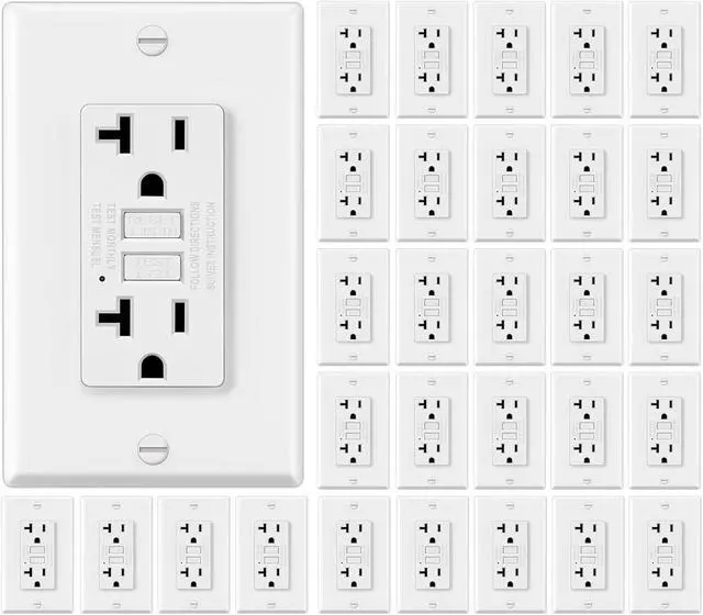 30 PACK- 20Amp GFCI Receptacle, Non-Tamper Resistant GFI Outlet with LED Indicator Light, Wall Plate and Screws Included, White