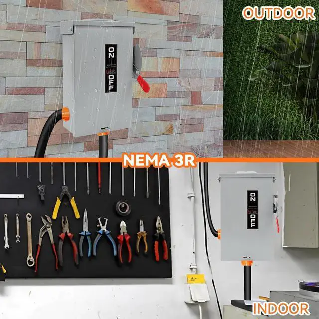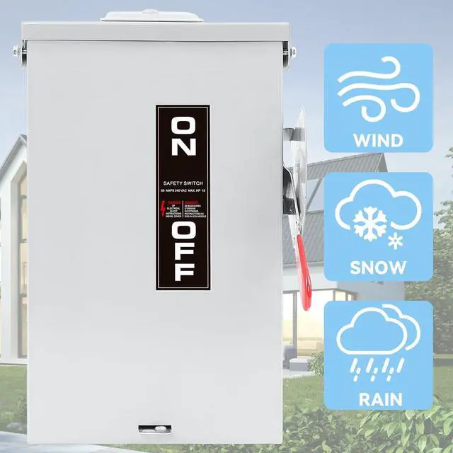 This 60 amp general duty safety switch is made of alloy steel and has been galvanized on the outside. In addition to meeting the NEWA 3R standard during design, it has a rated current of 60 amps and a rated power of 14000W, which can meet the needs of most high-power appliances in your home.