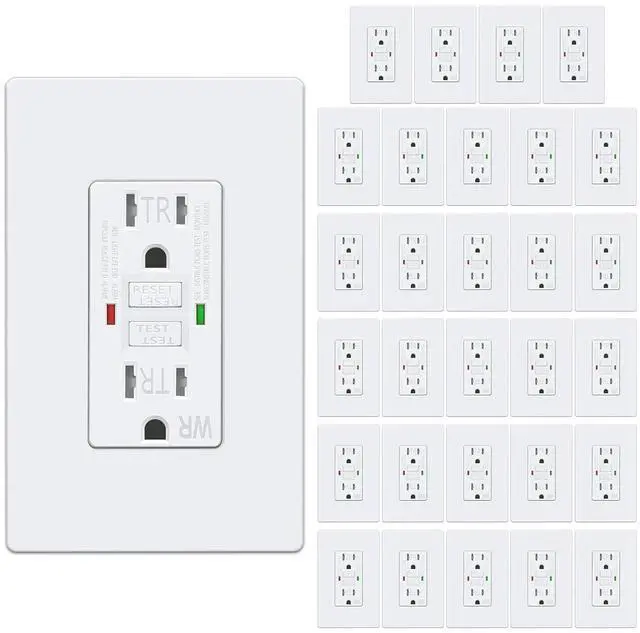 30 Pack - ELECTECK 15 Amp Self-Test GFCI Outlets, Outdoor Weather Proof (WR) GFI Receptacles with LED Indicator, Ground Fault Circuit Interrupter, Screwless Wallplate Included, UL Listed, White.
