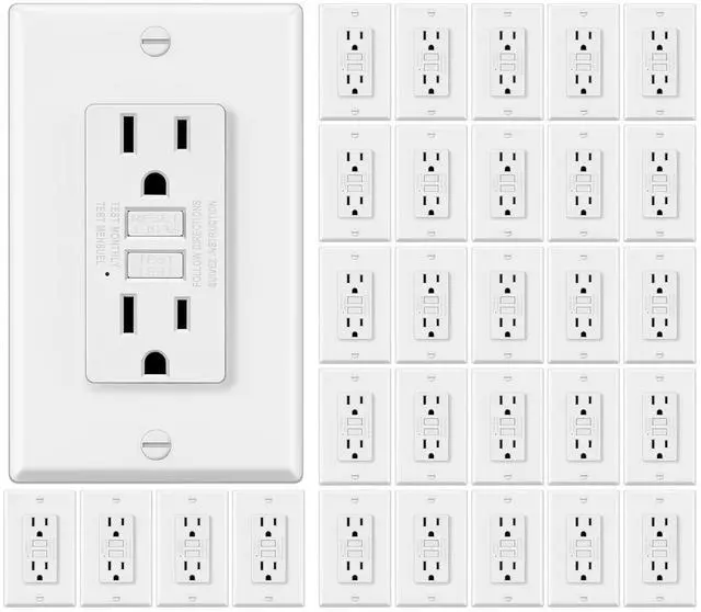 30 PACK - ELECTECK 15A GFCI Outlets, Non-Tamper Resistant GFI Receptacles with Wallplate, ETL Listed, White