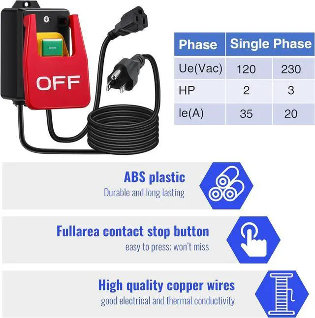 2 Pack Router Table Switch: widely applied in emergency stop of the table saws, router tables, drill presses and other electrical workshop equipment; The paddle switch allows a maximum current of 16 amps, and will not work with power tools drawing higher amperage; Please keep this in mind when connecting to the machine