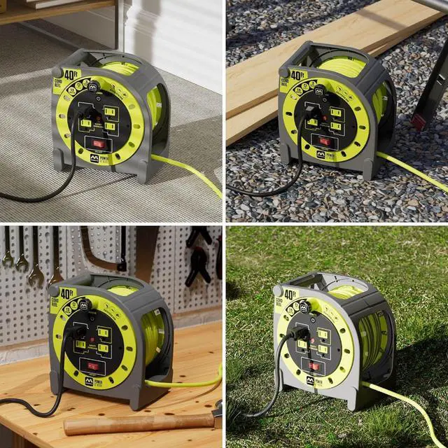 14AWG CORD, 13AMP: Masterplug 40ft Case Cord Reels are great for DIY, household or commercial use, with 4 power outlets to apply multiple appliances