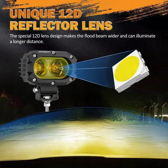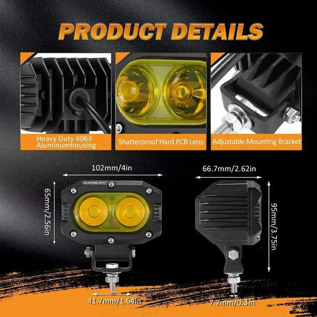 UNIVERSAL AUXILIARY LIGHTSFit for all 9-30V DC vehicles and boats. The led light pods can be installed in any location and any kind of cars, Off Road Vehicles, ATVs, UTVs, SUVs, Construction Vehicles, Farm Vehicles, Trucks, Motorcycles, Buses, Boats, etc. Great for fog lamps, ditch lights, rear work lights, driving lights, headlights, work lights, off road lights, backup reverse lights, search lights and more.