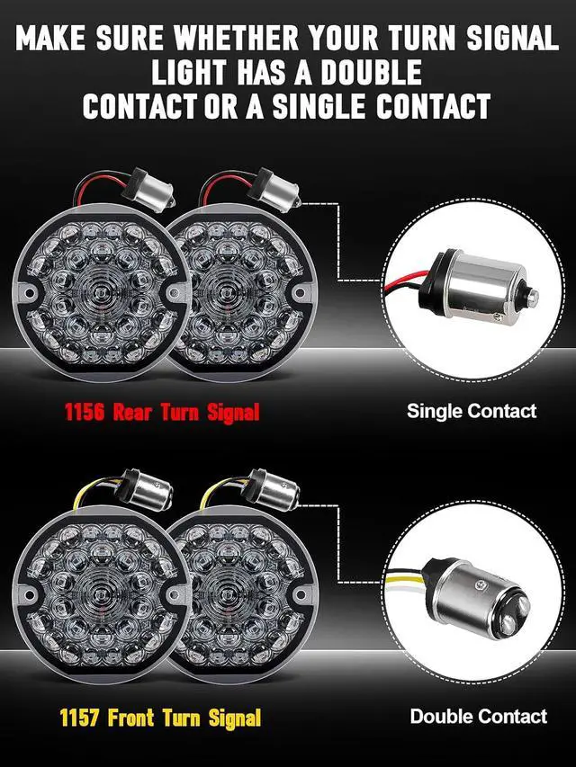 PACKAGE INCLUDED2PCS 3.25" 1157 front led turn signals + 2PCS 3.25" 1156 rear led turn signals. We offer one year warranty, free maintenance and 24 hours quick after-sales service.