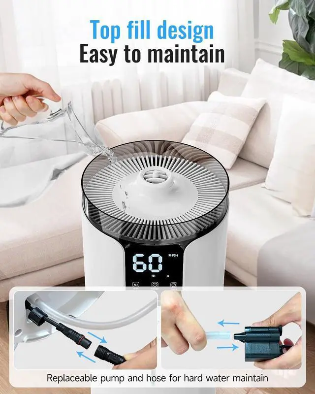 [30-Day Replacement & 1-Year Coverage] Our after-sales team is always here for you. Our large humidifier offers 24/7 online support for refunds, returns, or technical assistance.