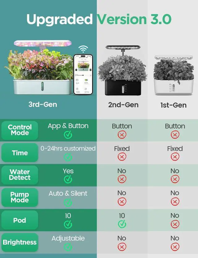 Effortless Maintenance: Take charge of your indoor garden with our user-friendly LetPot App. From precise lighting adjustments spanning 24 hours to customizable light modes tailored to distinct growth phases unlike rigid time systems, you can effortlessly customize brightness to suit your needs and save on expenses! Our app becomes your green ally, with advanced features like water level alerts and silent mode ensuring your plants thrive.