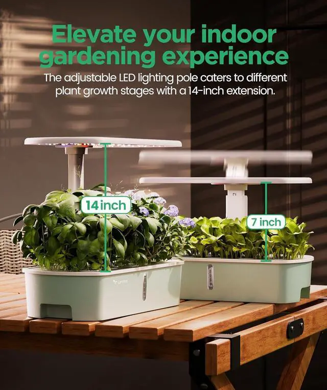 Enduring Performance: When you choose LetPot, you're not just getting a product; you're gaining lifetime premier customer support! Our hydroponic system shines bright, crafted from premium resin materials devoid of BPA and undergoing rigorous testing. The adjustable LED lighting rod, extending up to 16 inches, accommodates diverse plant growth stages. Moreover, the 4-liter water tank sustains growth for up to 14-21 days without requiring watering.
