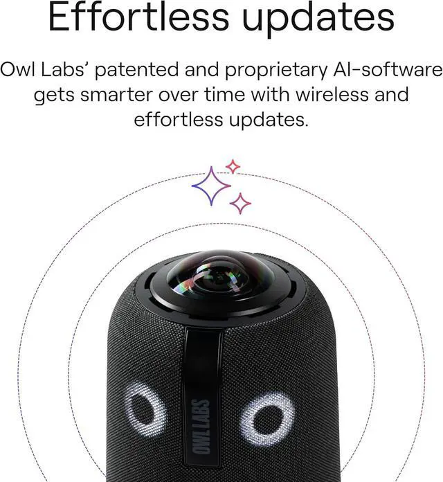 SMALL TO LARGE ROOM COVERAGE. The flexibility of the Owl Labs ecosystem is unmatched. Pair two Meeting Owls, a Meeting Owl and an Owl Bar, or add an Expansion Mic to expand video and audio reach in larger spaces. Compatible with Owl Labs Whiteboard Owl to complete your hybrid room setup.