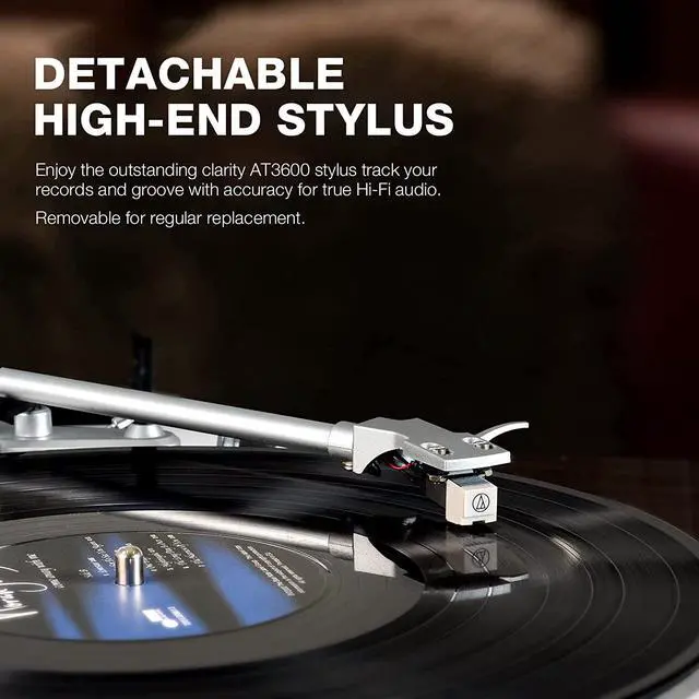 • SPECTACULAR MUSICAL ACCURACY - The diamond-tipped stylus cartridge is tracking your records grooves with precision for accurate, immerse yourself in the detailed high resolution sound. The greater mass of the aluminum platter damps unwanted vibrations resulting in a more 3-dimentional sound with tighter bass, a fuller midrange, and overall improved clarity
