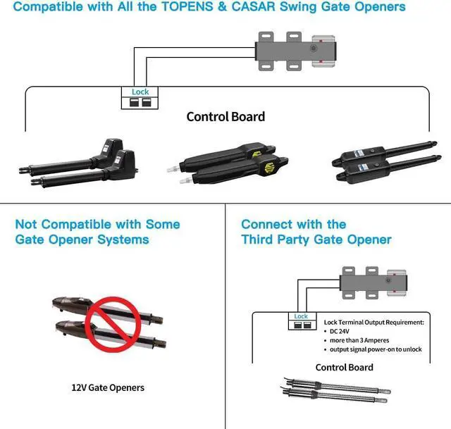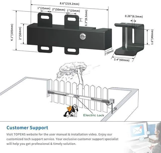 Clever Design - The gate lock is ideal for improving your gate safety. Q235 steel material reduces the weight on the end of the gate. No need for a second remote control, as the ET24 Electric Lock will automatically activate before your gate opens and locks after the gate closed. Easy DIY installation, and step-by-step instructions are included for your peace of mind.