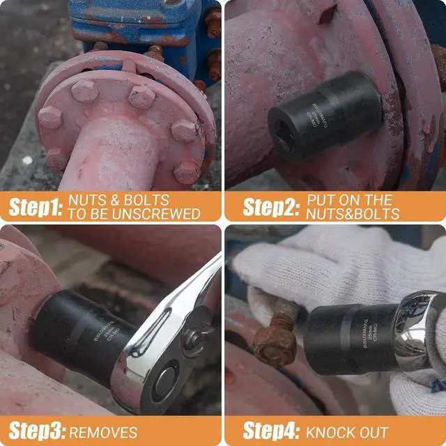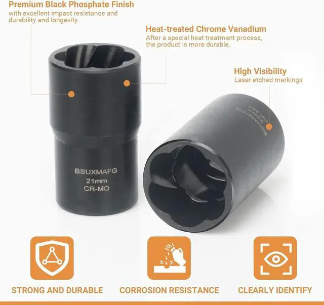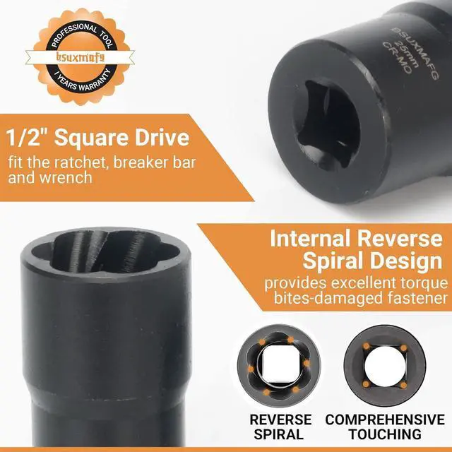 Multi-ApplicationLug nut extractor can meet various daily needs, whether it is car maintenance, home decoration, or craft production, and can provide you with great convenience. Can be used with your favorite tools such as impact wrenches, hand and air ratchets, hex wrenches, adjustable wrenches, pliers, and sockets.