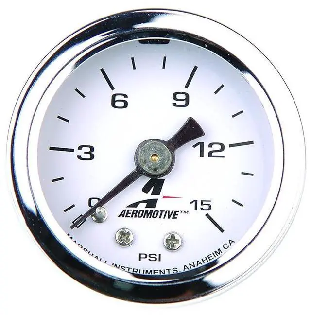 Unlock the full potential of your high-performance engine with Aeromotive's liquid filled fuel pressure gauge, meticulously designed to thrive in the most challenging environments. These gauges are an essential tool for anyone serious about automotive excellence, offering durability and accuracy right where you need itunder the hood of your high-performance engine. Each fuel pressure gauge is robustly constructed with a 1.5 -inch diameter and features a 1/8" NPT male connection, ensuring a secure and straightforward installation. Available in 0-100 or 0-15 PSI pressure ranges, our gauges cater to diverse monitoring needs, from daily driving to competitive racing.