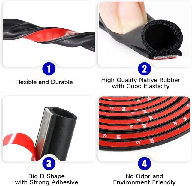 EASY TO CUT SIZE AND INSTALL This flexible weather stripping is made of EPDM rubber, easily bend to any contours you want and easily cut the size you need. No complicated process to install, just measure, cutting the seal strip by scissors, remove the self-adhesive cover, put it on your car, press it to make it firm and finished. This product had been made of high EPDM content, it can provide long life and durable for the product and maintain longer on your car