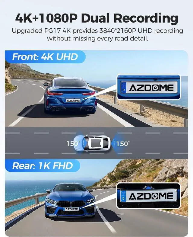 Superior Night Vision - PG17 4K car rear view mirror camera applies an anti-glare film to reduce glare during daylight hours and is equipped with WDR technology to enhance image details in low light conditions.