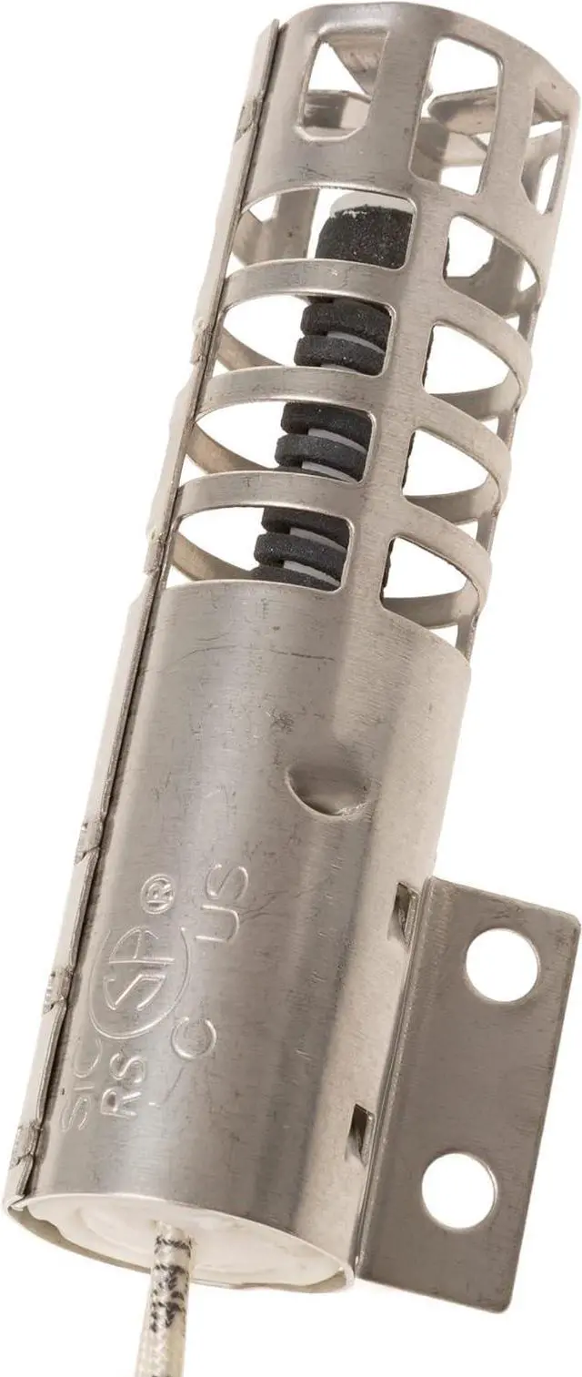 This General Electric WB2X9154 gas range oven ignitor works with many GE, Hotpoint, Kenmore, and RCA ovens. Assembly includes a round, carborundum-style ignitor with 2.5-3.0 amps and a 5-1/4-inch adapter plate. Replaces part numbers 1990 and 3198.