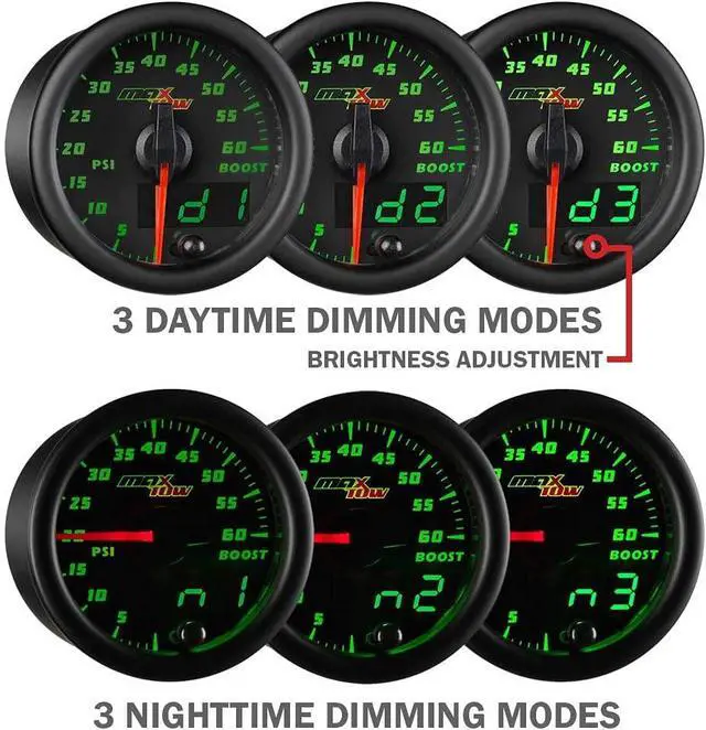 Includes 1/8-27 NPT Pressure Sensor, 9' Sensor Harness, 5' Power Harness, Gauge Visor, Mounting Hardware & Installation Instructions MaxTow Guarantee with One Year Limited Warranty & Free Lifetime Technical Support