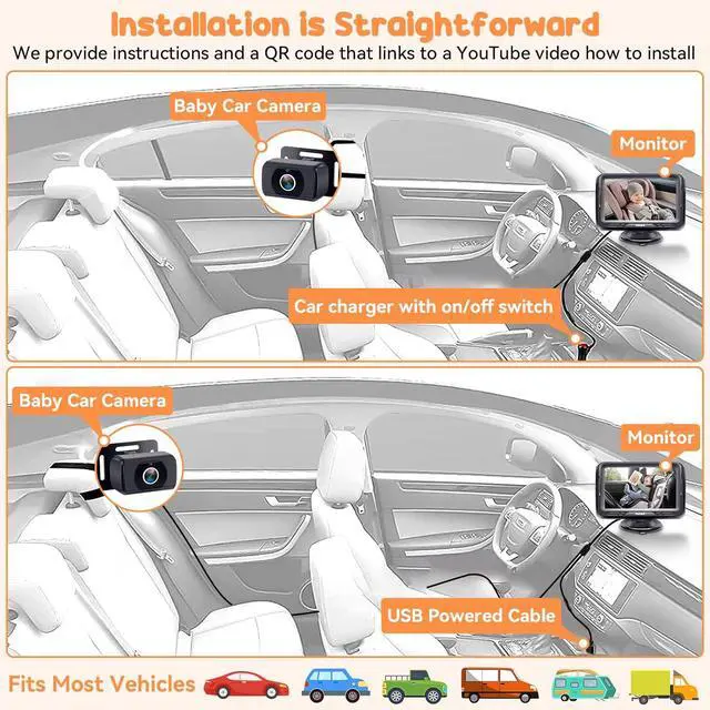 150° Wide-Angle & 360° Adjustable View Each camera features a 150° wide-angle lens and 360° rotation for full backseat visibility, allowing parents to monitor all movements and adjust the view for optimal safety
