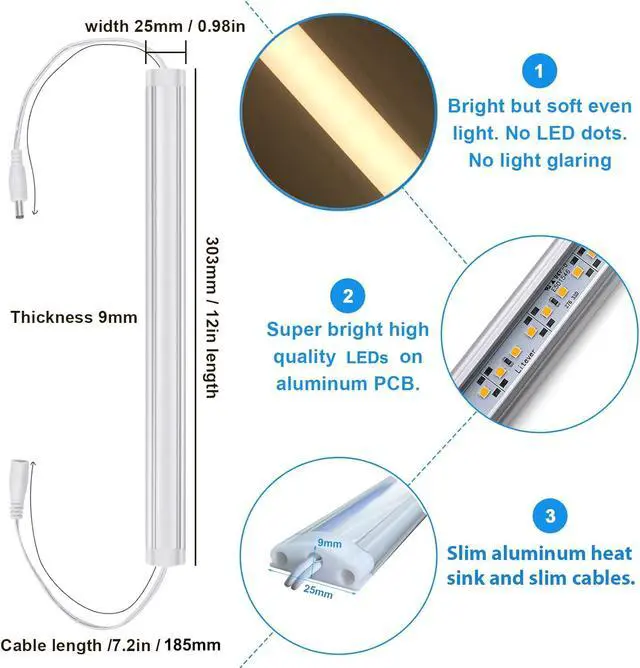 Easy to Install--Sufficient self-adhesive pads, mounting clips, wire clips, extension cords will help you to install this under cabinet led lighting kit quickly and easily.