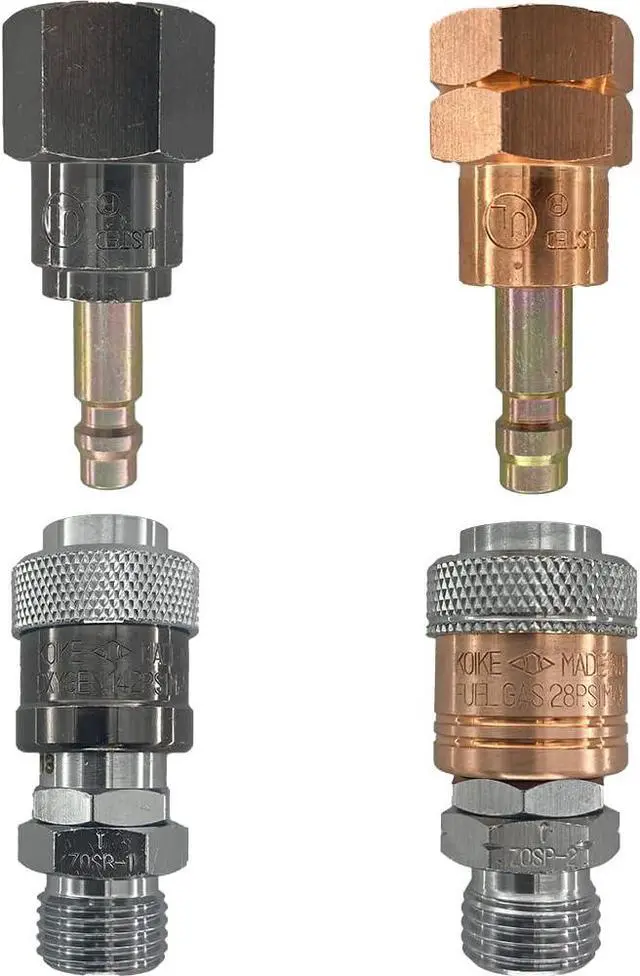 Safely and quickly change equipment gas hookups with Koike oxy-fuel quick connects. Our couplers are available in three models.