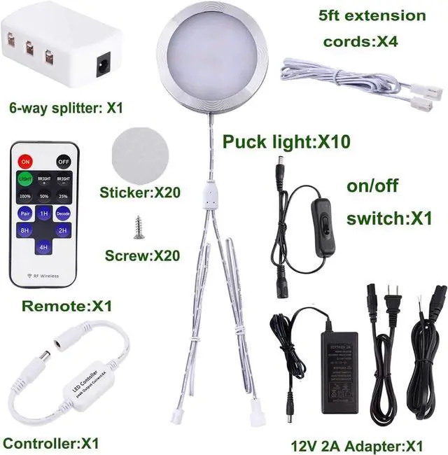 EXTENDABLE USAGE: The number of puck lights can be added according to the needs. Also the RF remote control can control different sets of lights