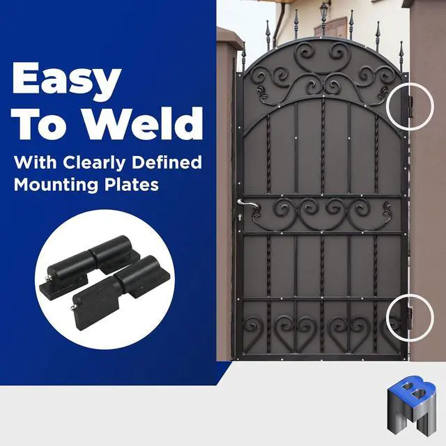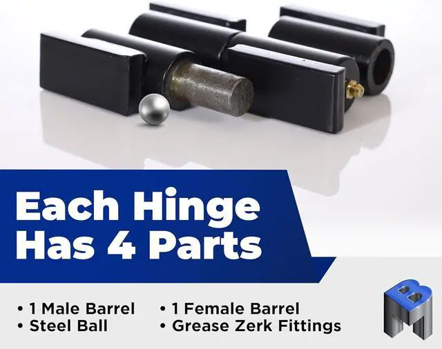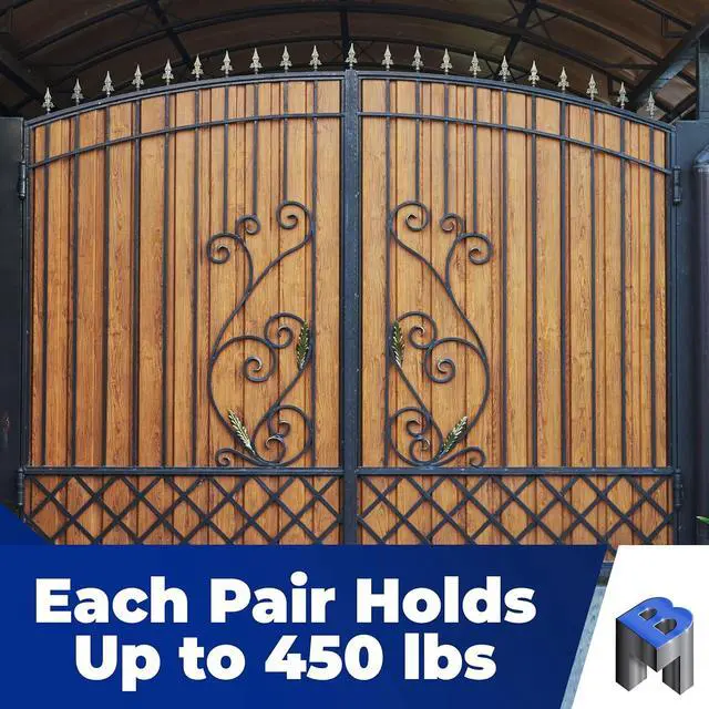 Each pair of barrel gate hinges holds up to 450 pounds. They are perfect solutions for driveway or security gates, swinging security doors, trailer gates, and more!