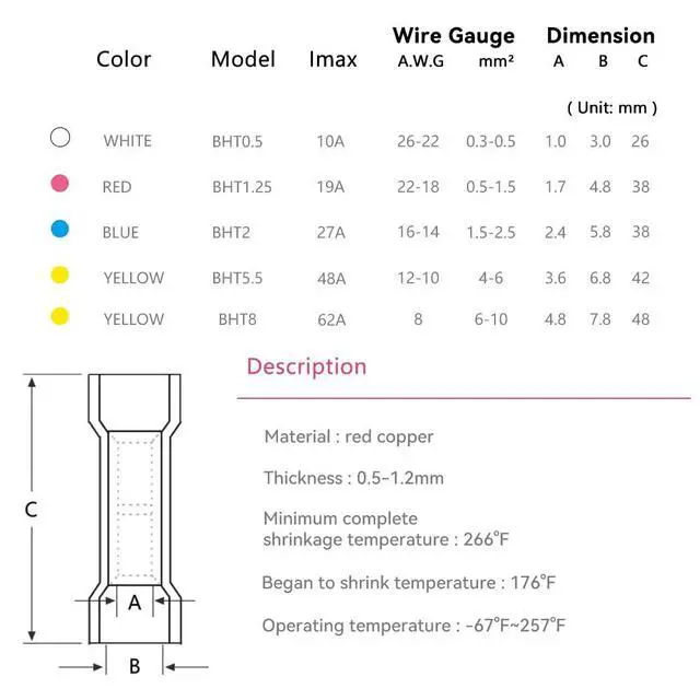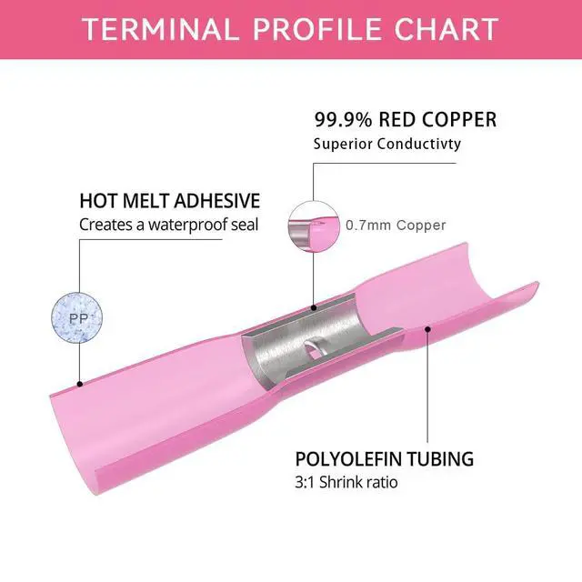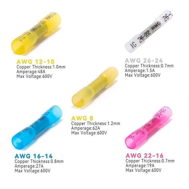Easy ApplicationStrip wire insulation, use wire crimper crimp heat Shrink butt connector and wire, apply heat with a heat gun while rotating a terminal. Electrical wire terminals crimp connectors will reduce in size and adhere to the wire. No need soldering set. Safe durable connection Finish quickly.