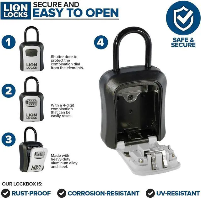 Easy Installation and Use: Lion Locks key lockbox with shackle provides a 4-digit combination that can be easily reset with 10, 000 personalized combination options, along with an easily detachable shackle so it can be hung from a doorknob or mounted to the wall.