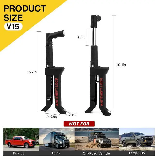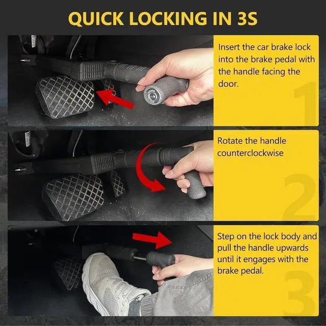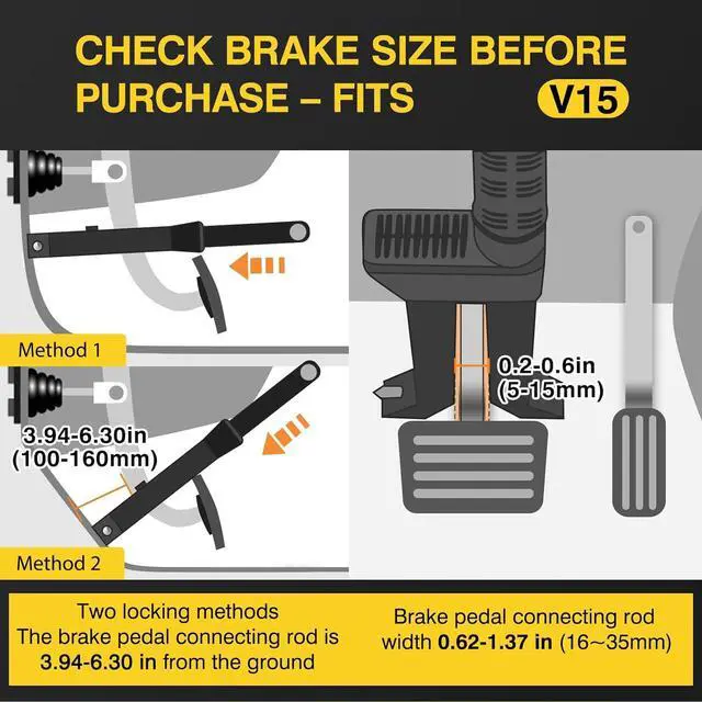UNIVERSAL FIT MOST VEHICLES- This antitheft locking is suitable for brakes/clutches with height: 100~160mm(3 15/16-6 5/16" ) and width: 5~15mm( 3/16-9/16"). Our Car security anti theft easily locks under the brake pedal on most cars.