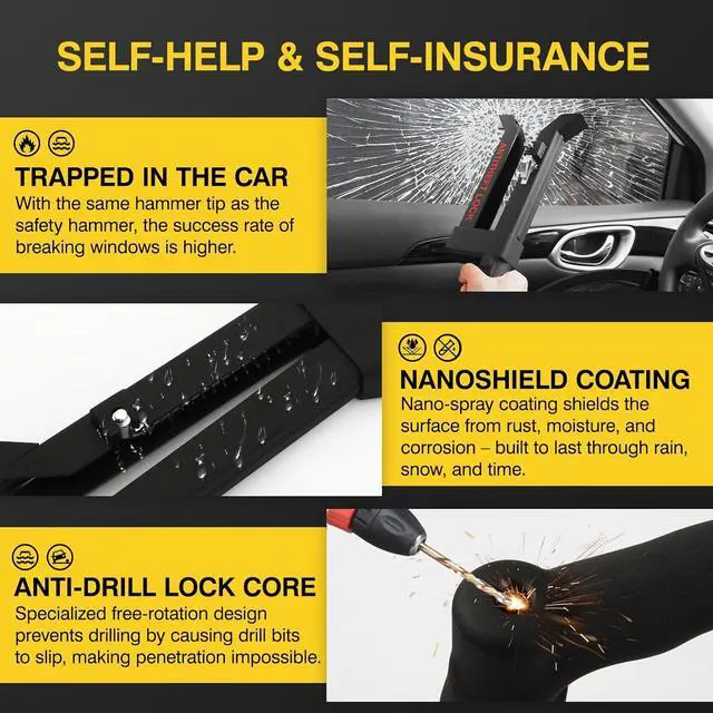 EASY TO GET CAR SECURITY- There is a detachable taper at the end of the car lock, which can be used as a broken window and self-defense tool. Each car anti-theft device is equipped with three keys, and other buyers cannot open your lock.
