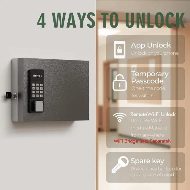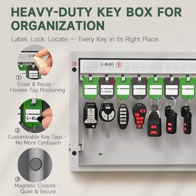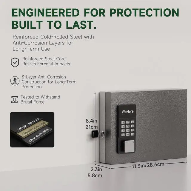 Carefully Design: The key lockbox door frame has 2 small magnets, the lockbox door will close automatically when it is near