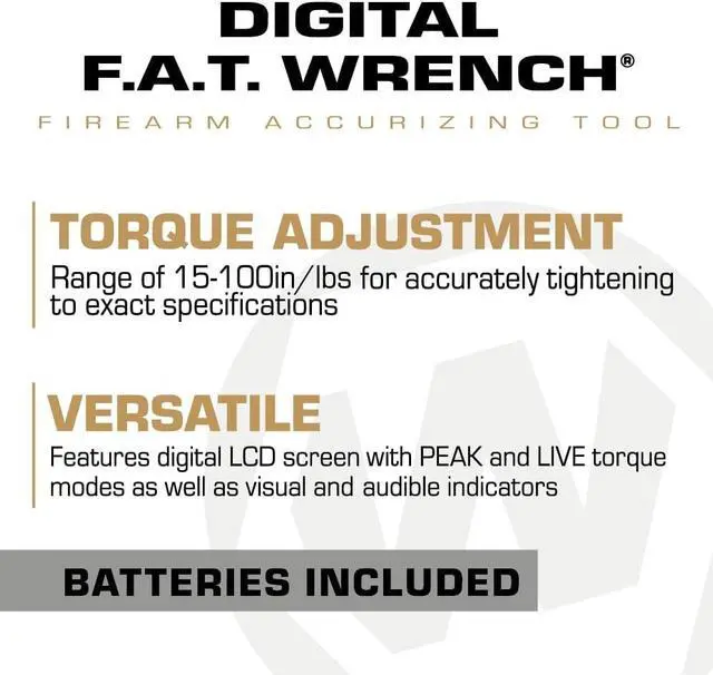 Wheelers Digital F. A. T. Wrench brings precision to the handheld torque wrench market. This digital handheld torque wrench lets you apply repeatable, accurate torque settings to your scope rings, bows and other screws. The audible and visual indicators let the user know exactly when the desired torque setting has been achieved.