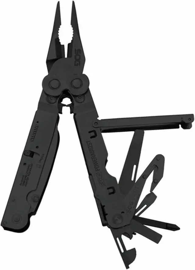 SOG POWERASSIST MULTI-TOOL The PowerAssist takes multi-tools to a new level. This is the first in the world to house not just one but two SOG Assisted Technology blades. Start to open the main blades, which are available when the main tool is closed, and S. A. T. takes over to complete opening. When not in use, these blades lock closed using our patent pending side release. Flip open the tool and experience the precision of the heavy-duty plier capability and large wire cutters. Smooth handle surfaces promote comfort on even the toughest jobs. Also includes Compound Leverage gear covers, heavy duty construction, V-Cutter, built-in crimpers and matte black finish for low reflectivity. ABOUT SOG Our story begins in Vietnam, where members of a highly classified US special ops unit - known as MACV-SOG - carried a unique combat knife into the jungle on covert missions. Years later, in 1986, that knife inspired a young designer, named Spencer Frazer, to found SOG Specialty Knives. So whether you're protecting others or leading an epic hunting expedition, tackling one of life's everyday challenges or facing your most extreme conditions yet, lead the way with SOG.
