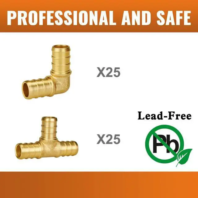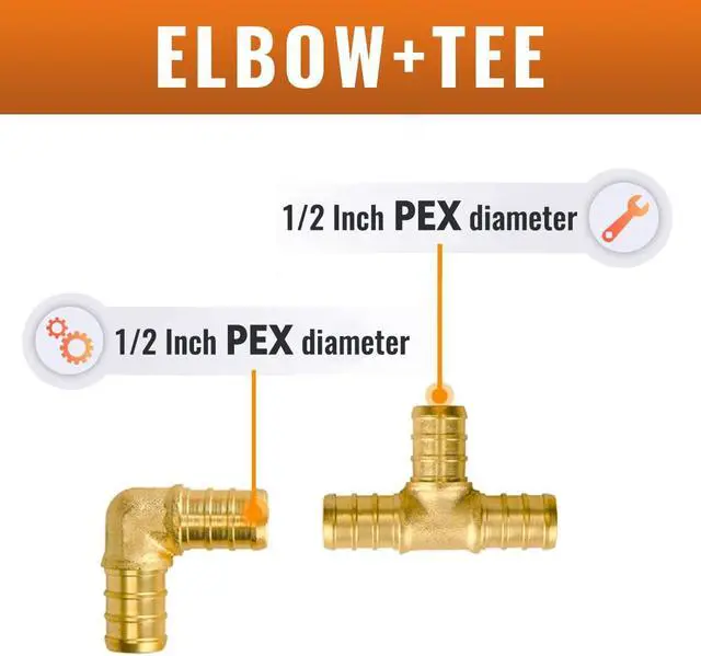 Compatible Products: Use with stainless steel clamp rings, or PEX Crimp tool and copper rings. (Clamp rings are not included in this set. ) Package Includes: 1/2Inch x 1/2Inch Elbow PEX Fittings (25 PCS); 1/2Inch x 1/2Inch x 1/2Inch Tee (25 PCS)