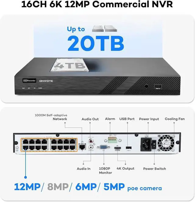 NVR PoE Security Camera System 4K, 16 Channel 12MP Commercial NVR 4TB, 8X 8MP Wired Outdoor IP Cameras, 134° FoV, AI Detection, 24/7 Video Audio Recording, CCTV Surveillance for Home Business
