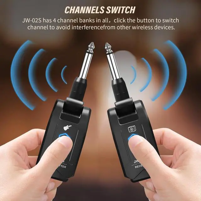 Easy to Pair: Press power switch indicator for 2 seconds to turn on/off the wireless guitar. Bouble tap it to enter pairing up mode. Tap it once to switch the different signal channels, which can control up to 4 music devices if you have 4 receiver