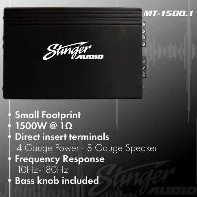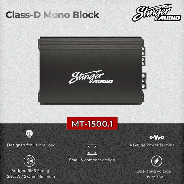 - : Class D topology ensures high efficiency with big power and a small footprint. This single 1-channel amplifier was built for driving subwoofers and subwoofer systems, maintaining the highest sound quality sound for your car audio.