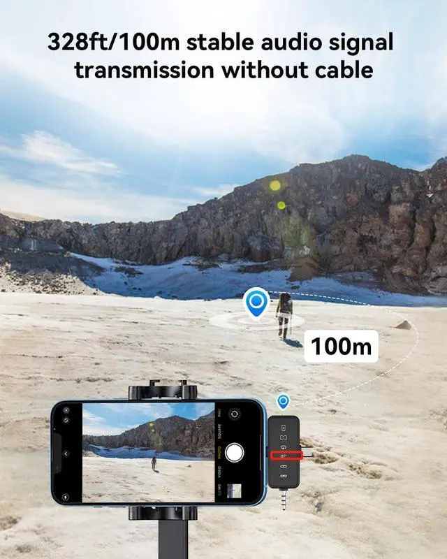 328 Ft Transmission: This wireless lavalier microphone uses state-of-the-art 2.4G technology to provide a stable connection, so you can achieve up to 328 feet of wireless transmission and ultra-low-latency recording of an ultra-wide range of footage that less lip-syncing in post.