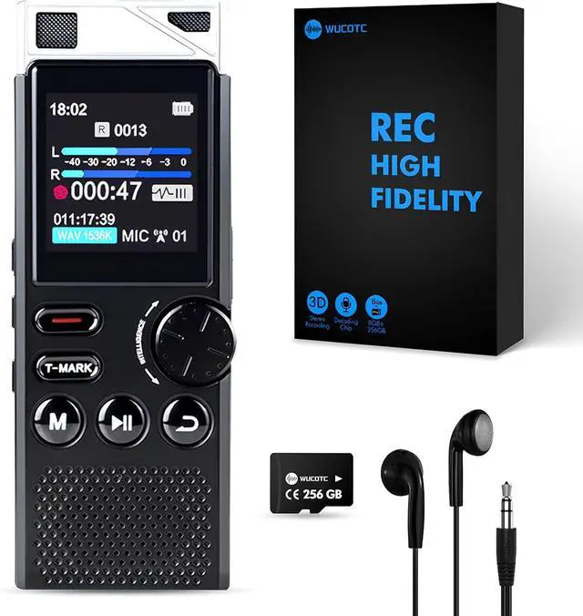 Packaging: 1 8GB recorder, 256GB TF card, 1 Type-c charging cable, and 1 user manual. Meanwhile, our products come with a two-year warranty and offer 24-hour service.