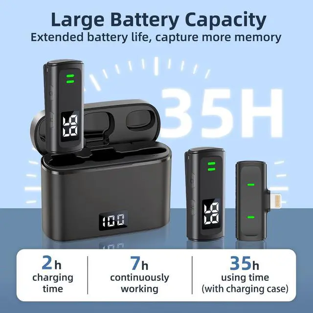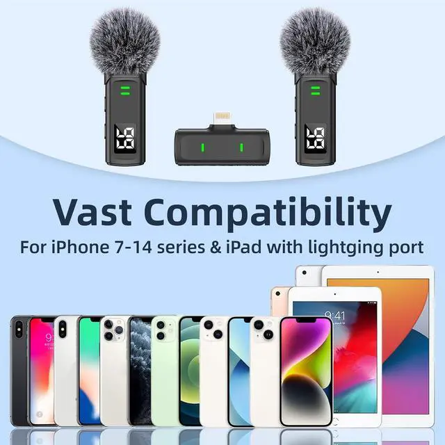 Instant Pairing Mini Mic: The wireless lapel microphone for iPhone 15 is easy to use, just plug in the receiver, press the mic button to connect, and start recording. No application or Bluetooth is needed. Designed for convenient portability, it's lightweight (only 11 grams) and compact, with the clip that effortlessly attaches to your clothing.