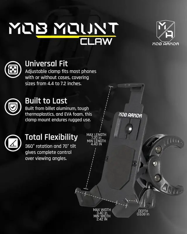 TOUGH & TESTED: Our Mob Armor Mount Claw is tested on and off-road to ensure it can handle practically any situation you put them through. Keep your device safe & sound even on the roughest roads.