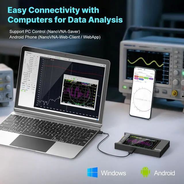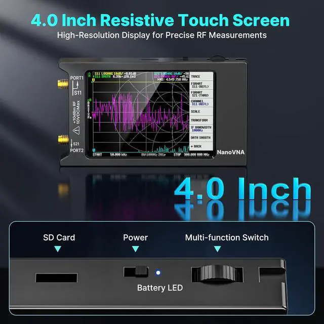 [PC CONNECTION & ANDROID CONTROL] Using PC software NanoVNASaver, Nano VNA H4 antenna analyzer can connect to a NanoVNA and extracts the data for display on a computer, and for saving to Touchstone files. We can export Touchstone (snp) files for various radio design and simulation software through PC software. The TX/RX method can measure the complete S11 and S21 parameters. If you need to obtain S12 and S22, you need to manually replace the transceiver port wiring