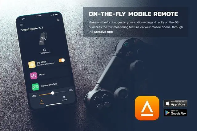MIC-MONITORING AND ON-THE-FLY AUDIO ADJUSTMENTS VIA MOBILE APP - Get your enemies before they get to you with our Footsteps Enhancer EQ mode. Customize it further via our Sound Blaster Command app (for iOS and Android) to manage audio settings on-the-fly without exiting your game or unplugging your G3! By pairing the G3 to your mobile phone, easily adjust volume and mic controls, or access the mic-monitoring feature so you can control how loud you want to be heard, while hearing yourself