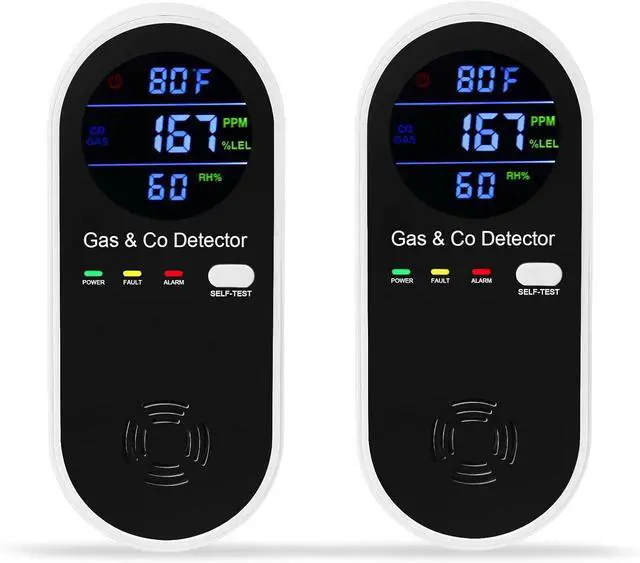 2 Packs Combination Gas & Carbon Monoxide Detector, 4-in-1 Natural Gas Detector & Carbon Monoxide Alarm with Temperature(°F) & Humidity,Propane & CO Detector for Home,RV,Apartment